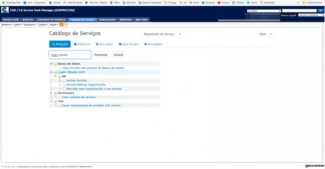Equipes PROCERGS: Equipes técnicas da PROCERGS, devem solicitar a criação do serviço por uma requisição no sistema USD: Login Cidadão Gov.Br. Incluir Serviço