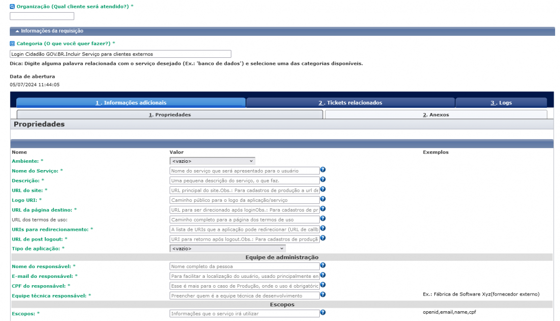 Equipes técnicas de cliente: O responsável pelo serviço no Órgão deve solicitar a criação do serviço utilizando o formulário de solicitação para clientes. Leia todas as orientações abaixo antes de preencher o formulário.