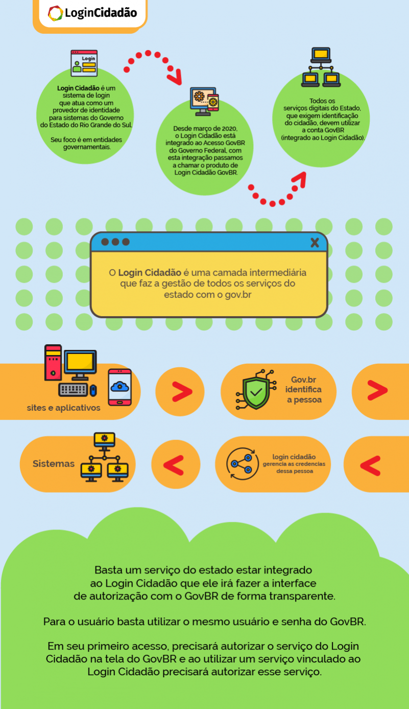 Login Cidadão Gov.br é um sistema de autenticação unificada que atua como um provedor de identidade para serviços/sistemas do Governo do Estado do Rio Grande do Sul integrado ao Acesso Único do Governo Federal. Seu foco de utilização é para entidades governamentais provendo acesso ao cidadão.